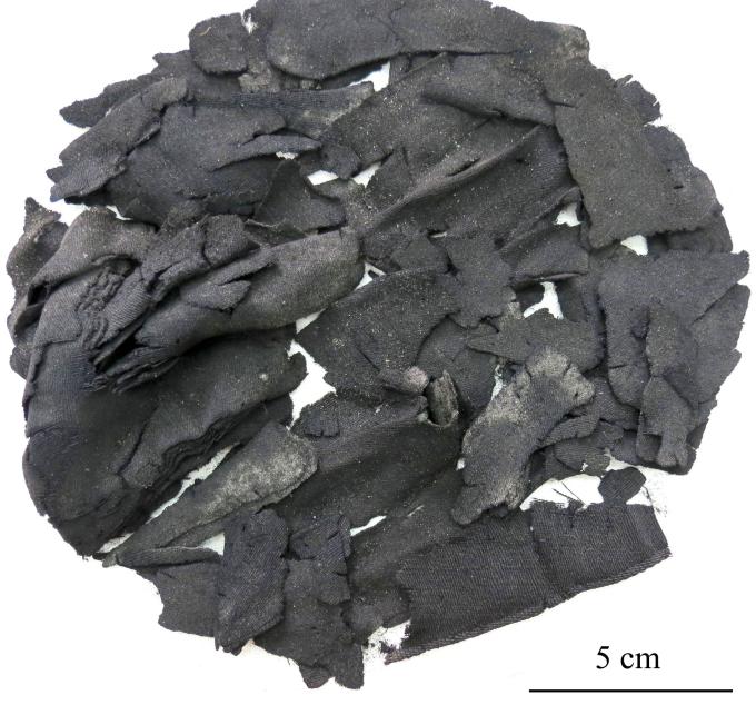 36 fragments. Max. dimension 22 x 12 cm; Min. dimension 1 x 3 cm. The fragments were likely pat of a semicircular cloack.